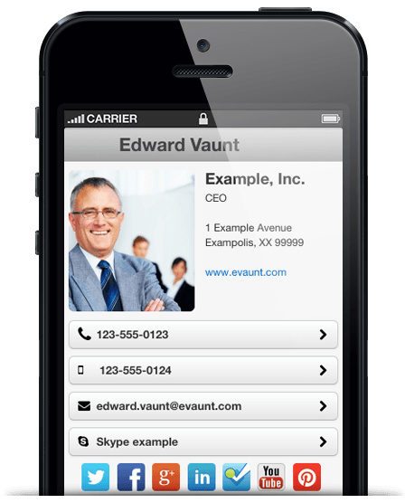 eVaunt lets you create a digital business card for yourself, or your company's employees, with a unique web page address and a simple, responsive design optimised for viewing on mobile devices.